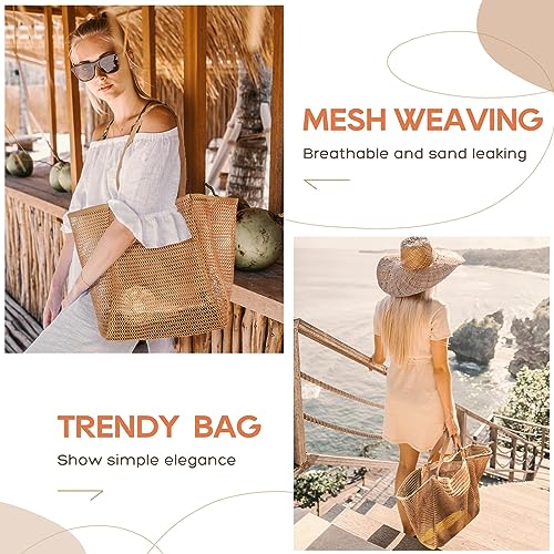 TOPBAG Mesh Beach Tote Womens Shoulder Handbag,Tote Bag for Women Large Foldable Mesh Swimming Bag with Pockets