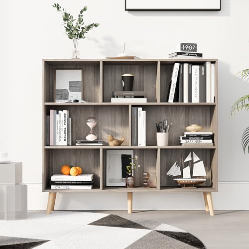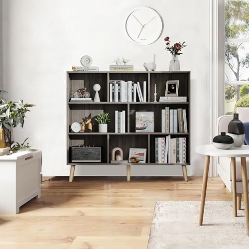 Specification: DIFY 8 Cube Wood Bookcase wit Legs, 3-Tier Open Standing Display Bookshelves for Office, Bedroom, Living Room, Grey