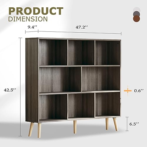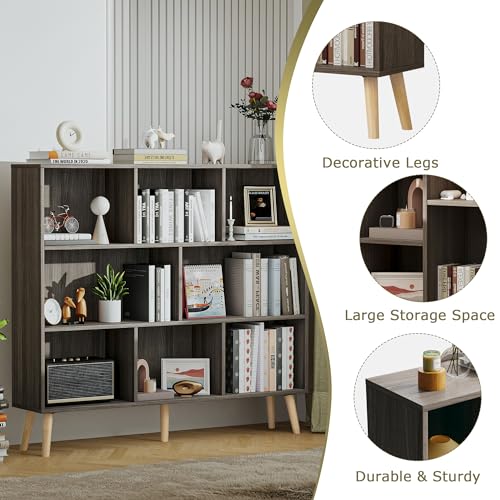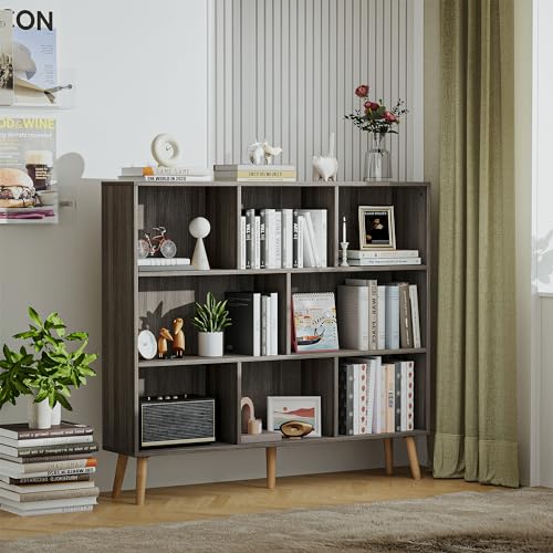 DIFY 8 Cube Wood Bookcase wit Legs, 3-Tier Open Standing Display Bookshelves for Office, Bedroom, Living Room, Grey