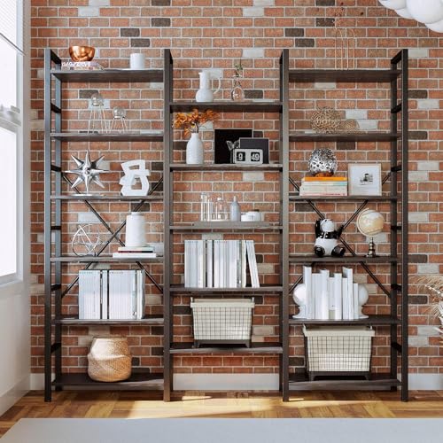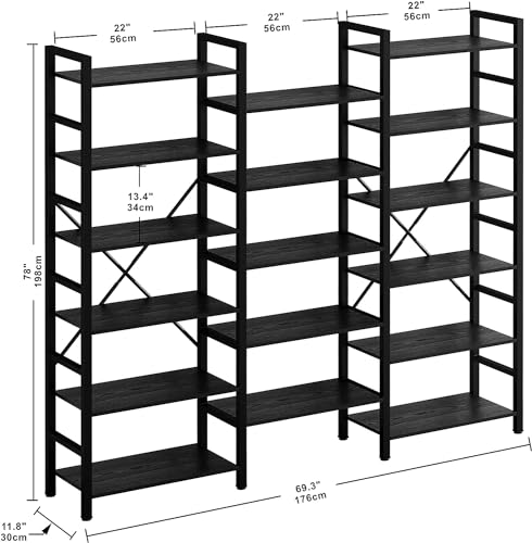 Specification: IRONCK Triple Wide Bookcases and Bookshelves 6 Tiers Industrial Bookshelf, Large Open Display Shelves with Metal Frame for Living Room Bedroom Home Office,Black
