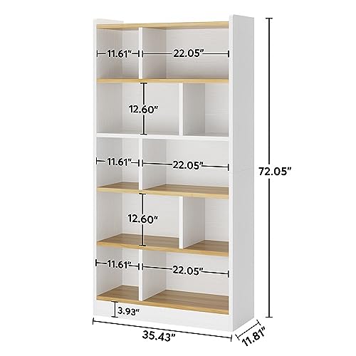 Tribesigns 72 Inch Tall White Bookcase, Modern Cube Bookshelf 6 Tier Bookcases, Large Open Display Shelf Storage Organizer for Living Room, Home Office, Library, Bedroom(White and Brown)