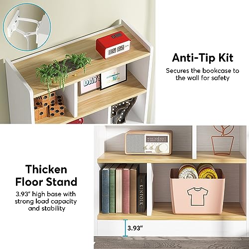 【SELECTED MATERIALS】 Made of thick particleboard with a smooth finish, this book shelf is characterized by great sturdiness and long-lasting performance. Each shelf can hold 44 lb to keep your books in safe hands. Plus, 3.9” high skirting board makes it stand firmly; Anti-tipping device and non-slip foot pads for extra stability and safety.