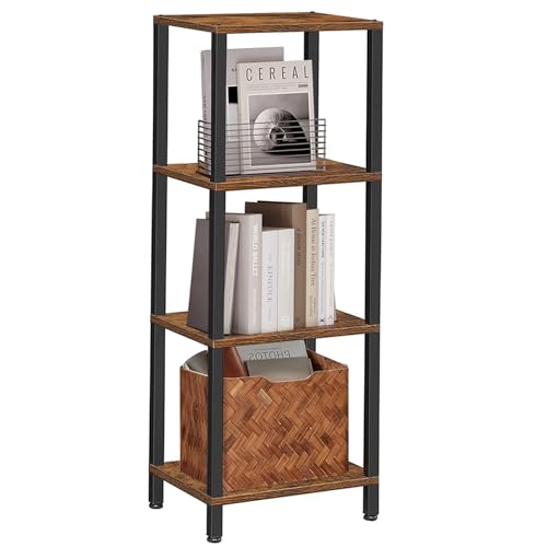 Specification: TUTOTAK Bookshelf, 4-Tier Small Book Shelf, Narrow Bookcase for Small Space, 10.7 x 15 x 40.8 Inches, for Living Room, Office, Study, Entryway, Industrial Style, Rustic Brown and Black BS01BB004