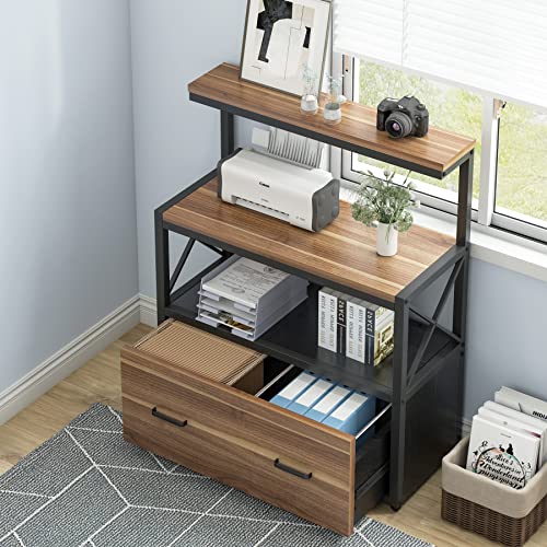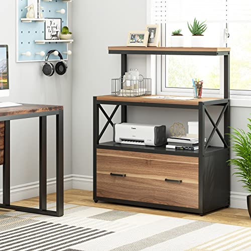Tribesigns Lateral File Cabinet Modern Filing Cabinet with 1 Large Drawer, Printer Stand with 3 Open Storage Shelves for Home Office