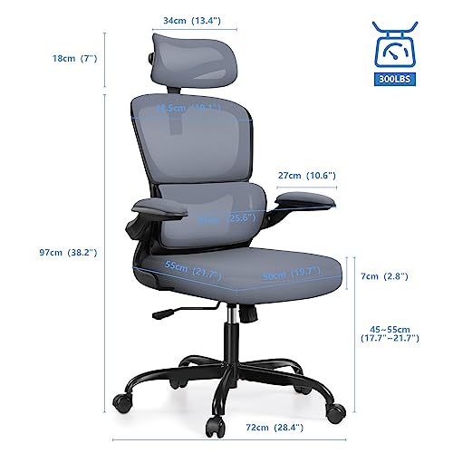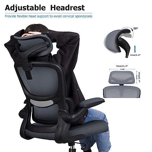 Razzor Ergonomic Office Chair, High Back Mesh Desk Chair with Lumbar Support and Adjustable Headrest, Computer Gaming Chair, Executive Swivel Chair for Home Office