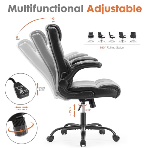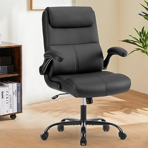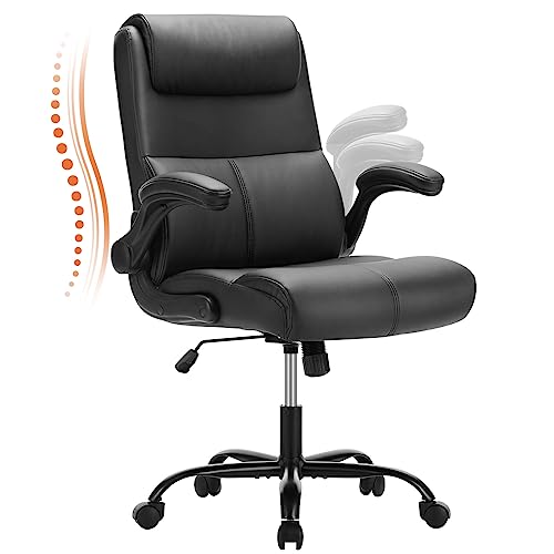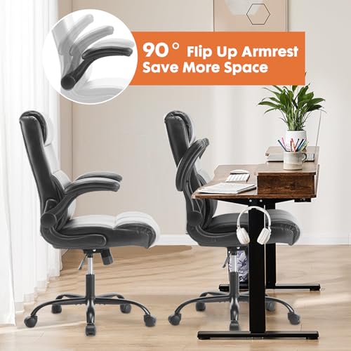 Sweetcrispy Executive Office Chair, Desk Chair with Wheels Mid Back Computer Chair with Lumbar Support Height Adjustable PU Leather Office Chair Flip up Arms, Black