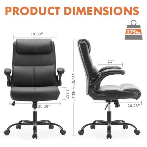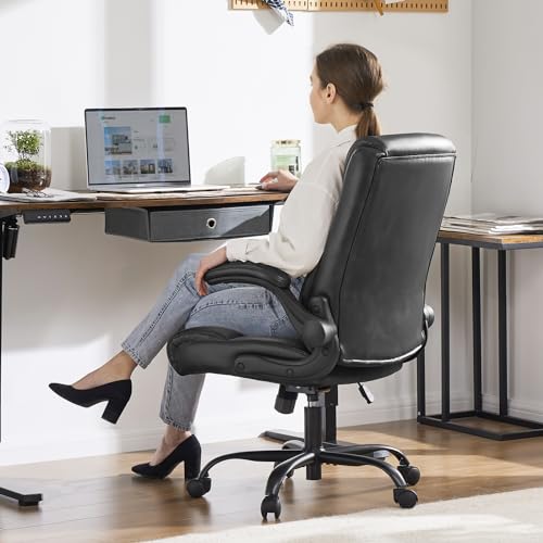 Specification: Sweetcrispy Executive Office Chair, Desk Chair with Wheels Mid Back Computer Chair with Lumbar Support Height Adjustable PU Leather Office Chair Flip up Arms, Black