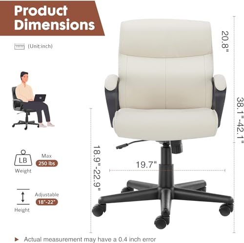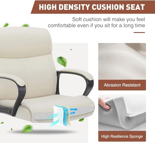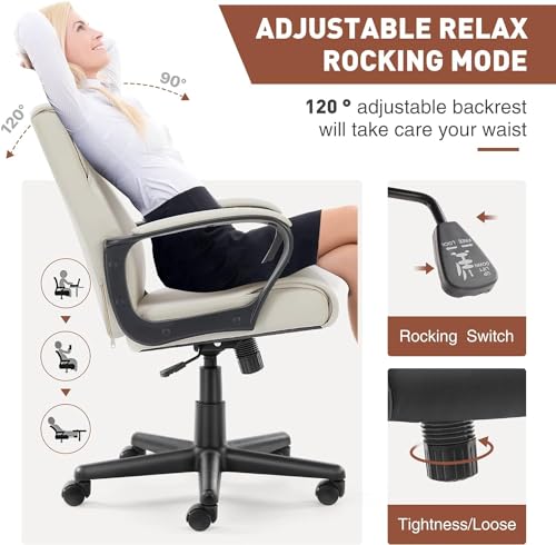 Specification: Sweetcrispy Executive Office Chair with Padded Armrests Adjustable Height, 360-Degree Swivel, Lumbar Support, PU Leather, Cream