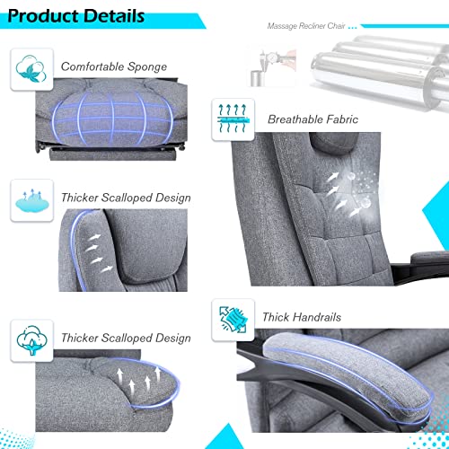 Specification: YODOLLA Heated Executive Office Chair with Massage, Adjustable Height and Backrest Home Office Desk Chair Lumbar Back Support Leather Computer Chair, Fabric, Grey
