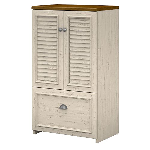 Bush Furniture Fairview Storage Cabinet with Drawer, Antique White/Tea Maple (WC53280-03)