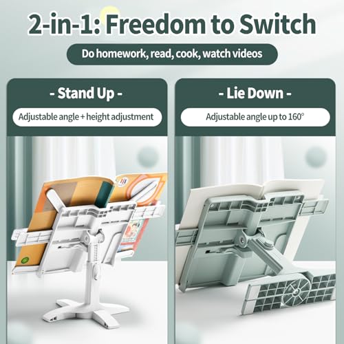 【All in 1 Design】This book holder supports both standing and lying-down positions and can be freely adjusted to the desired angle. It caters to various use cases, including reading book stand, cookbook stand, sheet music stand, laptop stand, etc., effectively combining the functions of different products into 1.