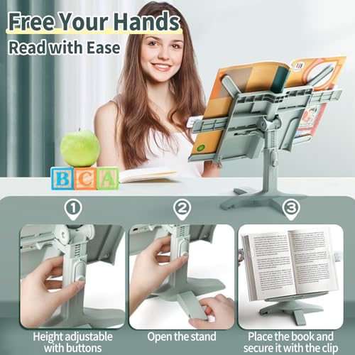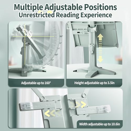 Book Stand for Reading, Adjustable Desk Book Holder Foldable Cookbook Stand with Page Clips for Music Scores, Recipes, Magazines, Tablet, Textbook