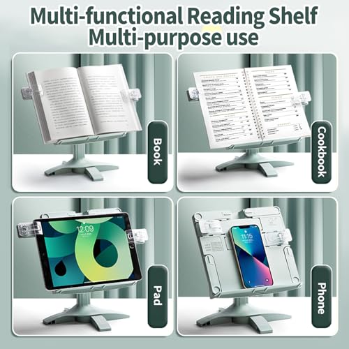 Specification: Book Stand for Reading, Adjustable Desk Book Holder Foldable Cookbook Stand with Page Clips for Music Scores, Recipes, Magazines, Tablet, Textbook
