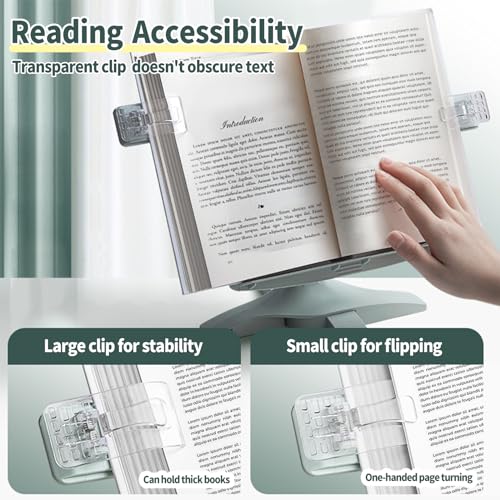 【Secure and Stable】This portable book stand maintains its stability and firmness. The special page clips are designed to hold pages in place, and can securely hold books, magazines, sheet music, and recipe books. The adjustable cross-shaped base provides a stable reading experience while also being easy to store and saving space.