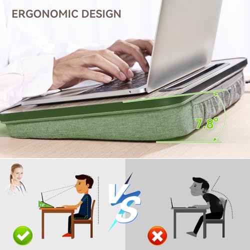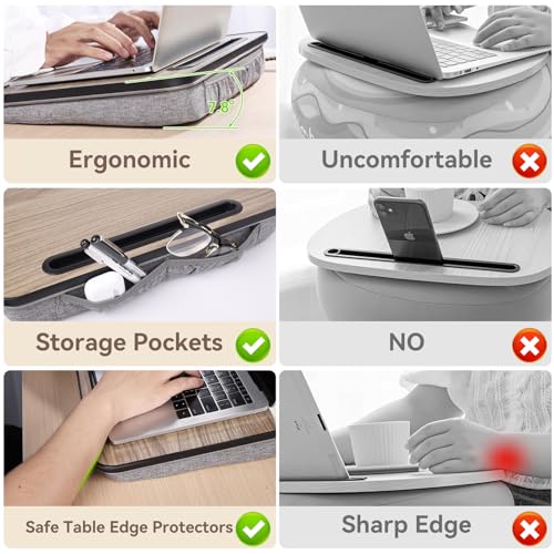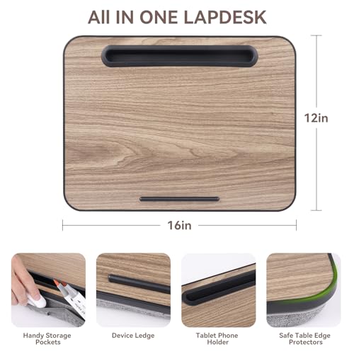 Specification: Lap Desk Laptop Bed Table: Home Office Portable Computer Lapdesk with Soft Pillow Cushion and Storage Bag – Wood Wide Writing Padded Tray for Work and Gaming on Couch – Fits up to 14 Inch