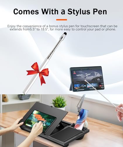 Comes with a Bonus Stylus Pen: We include a retractable stylus pen that works with any touchscreen device. This pen extends from 5.5″ to 18.5″ and requires no charging, Bluetooth, or application connection. It’s perfect for students, kids, and anyone who needs to maintain a comfortable screen distance while browsing and protecting their eyesight.