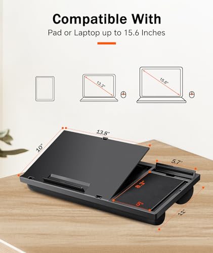 Specification: Supamir Adjustable Laptop Stand for Bed Couch & Car, Lap Desk with Cushion Integrated Mouse Pad and Phone Holder. Comes with a Stylus Pen for Touchscreens, Multifuntional Drawing Desk on Sofa