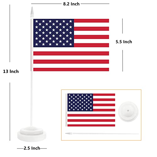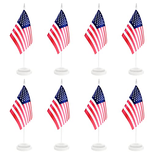 Specification: 8 Pack USA Desk Flag Set, US American Small Mini Table Flags, Miniature Desktop Flag With 12″ Solid White Pole , White Base, Small Mini Desktop Flag, Office Decoration, Home Decoration, Festival Celebrations (8 Pack White Pole USA)