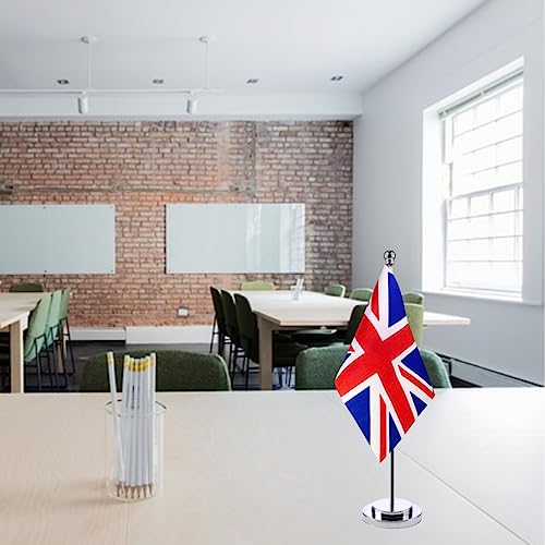 Specification: United Kingdom Table Flag Desk Flag of UK With 30CM Durable Stainless Steel Stand Base Desktop Union Jack Veteran Office Home Bar International Conference British Theme Party Holiday Decorations