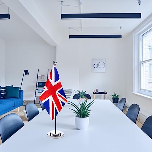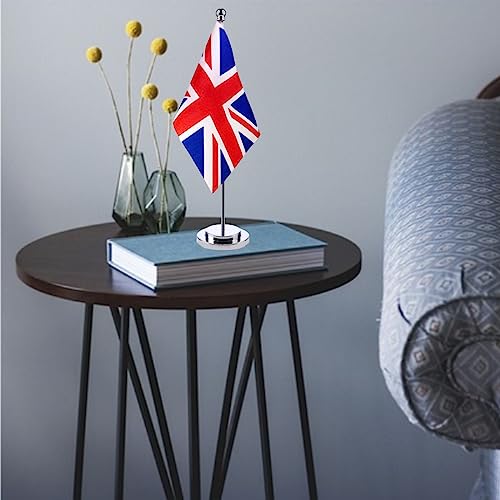 United Kingdom Table Flag Desk Flag of UK With 30CM Durable Stainless Steel Stand Base Desktop Union Jack Veteran Office Home Bar International Conference British Theme Party Holiday Decorations