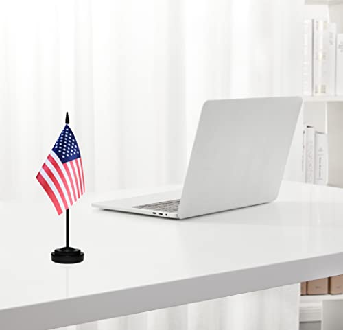 Specification: USA Desk Flag Set, 2 Pack American US Table Office Flags, Small Mini Desktop Flag With 12″ Solid Black Pole, Black Base, Miniature Desktop Flag
