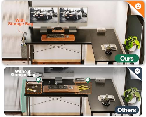 AODK L Shaped Desk, 50 Inch Computer Desk with Storage Bag, Reversible Home Office Desk with Host Stand, Black Corner Table for Bedroom Studio, Modern Wood PC Desk for Study Work
