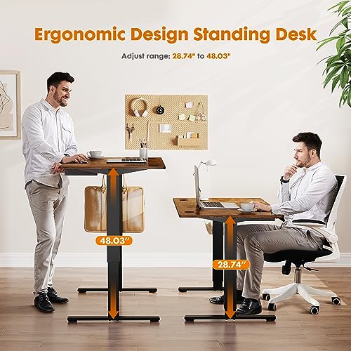 Specification: Electric Standing Desk with Drawer 48 x 24 Inches Stand up Desk with Storage Height Adjustable Desk Sit Stand Desk Black Frame/Brown Desktop Ergonomic Rising Desk Computer Workstation for Home Office