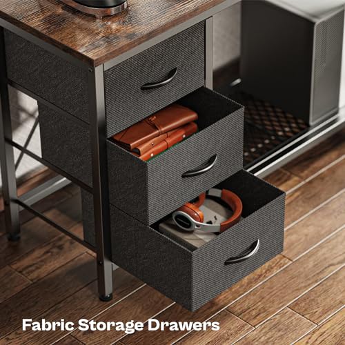 【REVERSIBLE L SHAPED DESK】: Install the fabric drawers on the right or left side to fit your layouts. The L desk easily surrounds you with all office items and suits small corners, fully utilizing the corner space. Perfect office desk, gaming pc desk, writing desk or study desk for home space