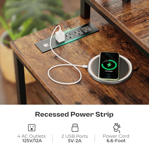 【POWER OUTLETS & MONITOR STAND】: 4 AC outlets and 2 USB ports are attached to the desktop of the desk with shelves, allowing you to charge your printer, gaming or office devices close at hand. And it also helps to declutter the messy and tangled wires. The monitor stands on the corner computer desk elevate your lines of eye to a higher level to avoid spine, neck pain whenever working or gaming
