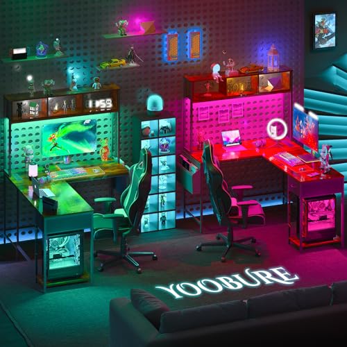 Specification: Yoobure L Shaped Desk with LED Strip & Power Outlet, Reversible L-Shaped Computer Desk, Corner Desks Home Office Desk with Drawer, Gaming Desk