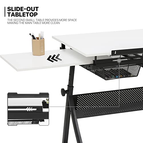 Drafting Tables for Artists – The art table features a main wood tabletop that is large enough for drafting, painting, and other creative projects. In addition, there is a slide-out table that provides an extra surface for placing drafting tools, laptops, books, or coffee cups.