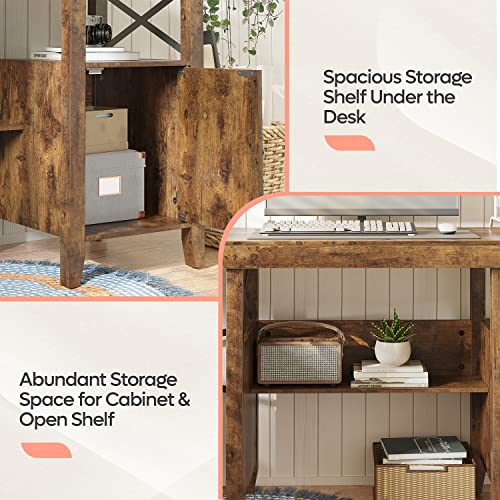 【Under-desk Bookshelf】 Our Farmhouse Office Table for Writing & Study comes with under desk bookshelf, which offers ample storage space for books, files, and other supplies. Abundant storage space for cabinet with door & open shelf provide you with high stability and flexibility of storage choices.