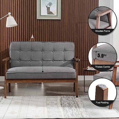 【Modern Retro Design】Mid-Century Retro Modern upholstered loveseat sofa set, classical leather and solid wood armrests, combined with button-tufted design, perfect addition to the living room, bedroom, waiting room, guest room.