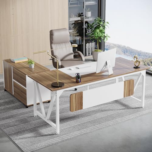 Specification: Tribesigns 70.8″ Executive Desk with 35.4″ File Cabinet Combo, Modern L-Shaped Computer Desk, Extra Large Workstation with 3 Drawers and Open Storage, Business Furniture Set for Home Office, White