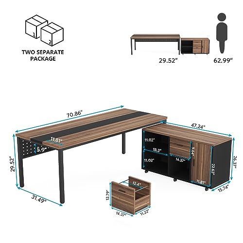 Specification: Tribesigns 70.8″ Large Executive Office Desk and 47″ Lateral File Cabinet Combo, L-Shaped Computer Desk 2 Piece Business Furniture with Drawers and Shelves, Home Office Workstation, Walnut