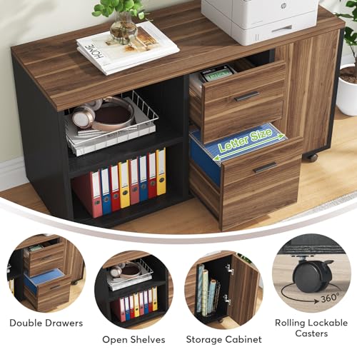 【Storage Cabinet with 2 Drawers】 Large mobile file cabinet 47.24″L x 15.74″W x 26.37″H, features with open storage shelves, door cabinet and 2 drawers (the bottom drawer is suitable for Letter size file), which can keep your books, papers, decors and daily office supplies organized, keeping all reach your arms. Large top space can hold your printer, scanner, fax machine etc. This printer stand can be fixed beside or under desk.