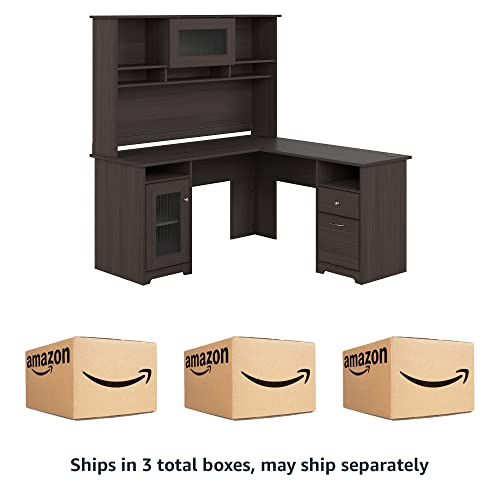 Bush Furniture Cabot L Shape Desk with Hutch, 60W, Heather Gray
