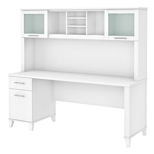 Bush Furniture Somerset 72W Office Desk with Drawers and Hutch in White