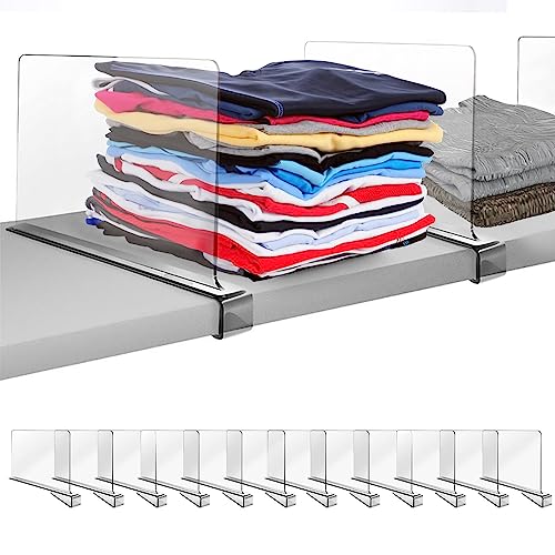 ikaufen 12pcs Clear Acrylic Shelf Dividers, 8 Inches Tall Vertical Purse Separators for Closet Perfect for Bedroom, Kitchen and Office Shelves, Adjustable Acrylic Bookshelf for Organization