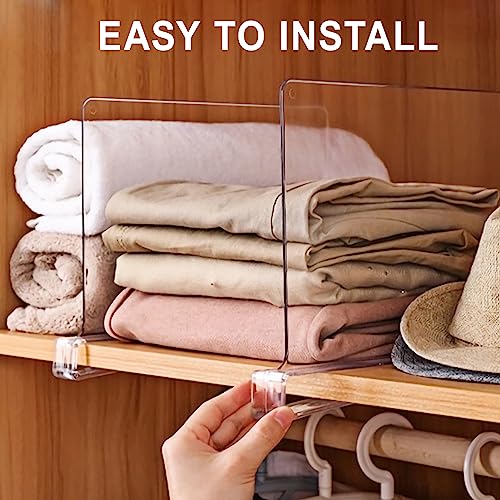 Material: Our clear acrylic shelf dividers are made of high quality acrylic, which is stronger, clearer, lighter and safer than glass, wood or chrome closet dividers. Wooden shelf organizers have no sharp corners and will not scratch your shelves.