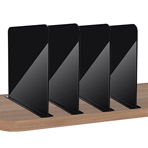 ROUFA 4Pcs Acrylic Shelf Dividers, Adjustable Closet Organizer Fit for Any Thickness of Shelves, Multi-Purpose Wood Shelf Separators for Bedroom, Kitchen, Office, Bathroom, 11.8”x11” (Black)