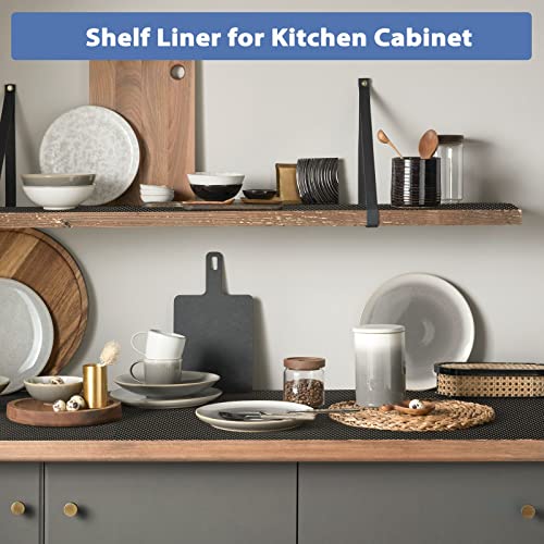 Shelf Liner Drawer Liners, Non Adhesive Kitchen Cabinet Liner Drawer Mat with Waterproof Protection Pad for Refrigerator, Cupboard, Cabinet Shelves, Pantry Cover, Black 11.8 x 118.1 inches